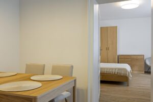 Byt prošel kompletní rekonstrukcí a je plně vybaven, připravený k okamžitému nastěhování. K dispozici je stylová kuchyň s jídelním koutem, obývací pokoj, ložnice, koupelna a praktická technická místnost s prostorem pro pračku, plynový kotel a úložné vybavení.
